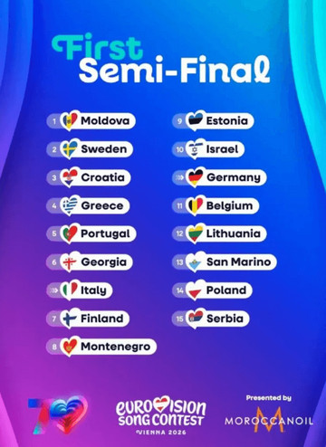 Ανακοινώθηκε η σειρά εμφάνισης των υποψήφιων τραγουδιών για τους δυο ημιτελικούς Eurovision.