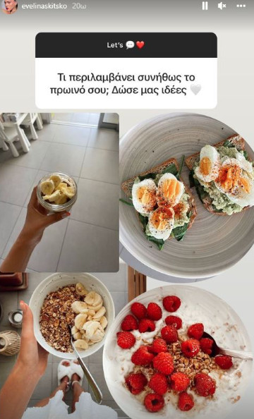 Ύστερα από ερωτήσεις που δέχθηκε από τους followers της, έκανε ένα tik-tok βίντεο που παρουσιάζει όλα τα γεύματα που καταναλώνει μέσα στην ημέρα, όταν τρώει στο σπίτι της. Εκτός από τα γεύματα, μοιράστηκε και φωτογραφίες από τις επιλογές της για το πρόγευμα μέσω του προφίλ της στο Instagram.