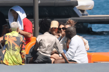 Ο φωτογραφικός φακό την απαθανάτισε με την παρέα της την στιγμή που κατέβαιναν από το σκάφος με το οποίο είχαν πάει για μπάνιο. Η Ευγενία Νιάρχου θέλοντας ν’ αποφύγει τους φωτογράφους επέλεξε να φορέσει ένα μεγάλο καπέλο προκειμένου να κρύψει το πρόσωπό της.