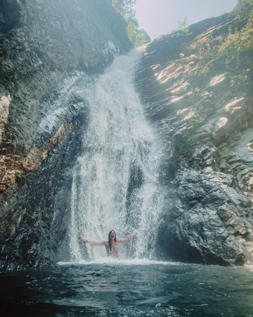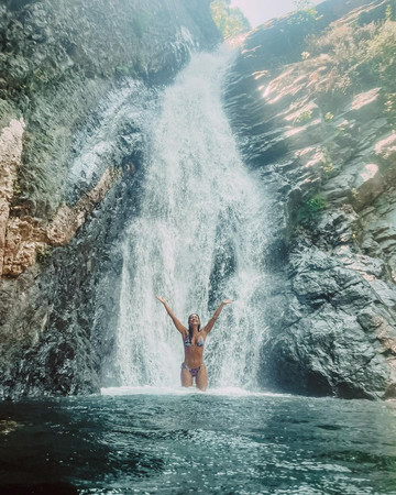Αυτή τη φορά, δημοσίευσε στον προσωπικό της λογαριασμό στο Instagram τρία στιγμιότυπα, που τη δείχνουν να κάνει μπάνιο σε καταρράκτη της Σαμοθράκης με ένα εντυπωσιακό μπικίνι και την ίδια να απολαμβάνει τη στιγμή.