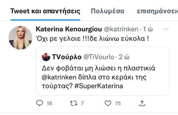 Η Κατερίνα Καινούργιου δεν άφησε να πέσει κάτω ένα πικρόχολο σχόλιο που έγινε από έναν ανώνυμο χρήστη του Twitter προς το πρόσωπό της.