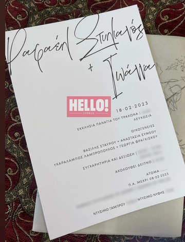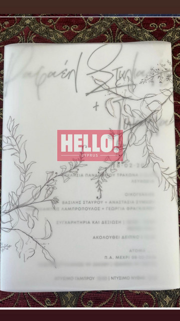 Το HELLO! Cyprus εξασφάλισε το προσκλητήριο γάμου, το οποίο είναι έτοιμο και θα ταξιδέψει σε όλους τους φίλους, συγγενείς και εκλεκτούς καλεσμένους του ζευγαριού.