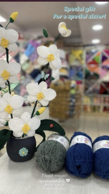 Η Άννα Καρσερά, φαίνεται πως έχει ένα ιδιαίτερο ταλέντο στο πλέξιμο αφού χάρισε στην αδελφή της μια πλέκτη γλάστρα με λουλούδια.