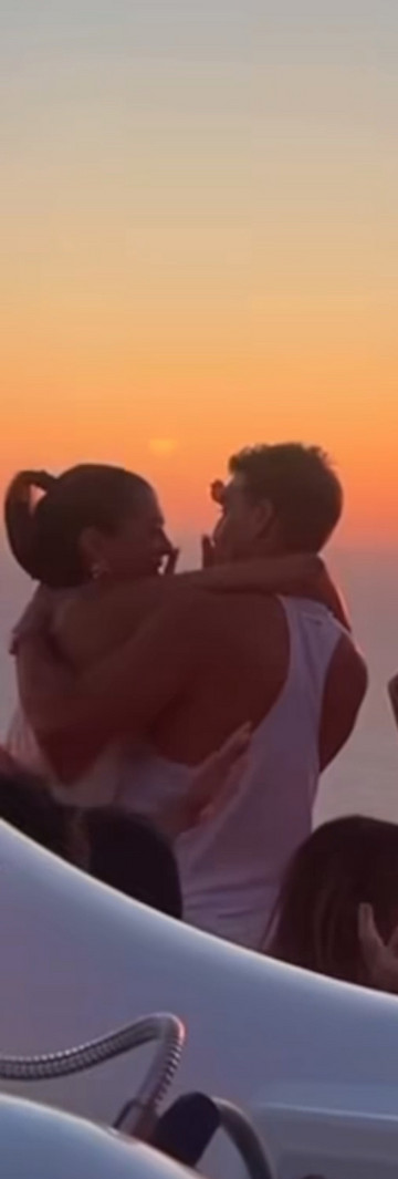 Στις φωτογραφίες φαίνεται ο γνωστός επιχειρηματίας, ο οποίος αποτελεί “μήλον της έριδος” ως εργένης, να αγκαλιάζει τρυφερά την Μελίνα, με την ίδια να κουρνιάζει με θέα το πέλαγο με το χαμόγελο στα χείλη και των δυο να είναι εμφανές. Από ότι δείχνουν αυτή η δυνατή φιλία ή τα πρώτα φτερουγίσματα ενός καλοκαιρινού φλερτ θα μας απασχολούν για καιρό.