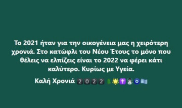 «Το 2021 ήταν για την οικογένεια μας η χειρότερη χρονιά. Στο κατώφλι του Νέου Έτους το μόνο που θέλεις να ελπίζεις είναι το 2022 να φέρει κάτι καλύτερο. Κυρίως με Υγεία. Καλή Χρονιά» έγραψε ο Ανδρέας Τσούνης.