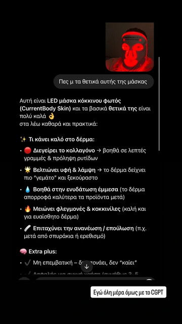 Όπως ανέφερε, το κόκκινο LED φως συμβάλλει στη βελτίωση της υφής της επιδερμίδας, ενισχύει την παραγωγή κολλαγόνου και βοηθά στη λάμψη και τη γενικότερη αναζωογόνηση του δέρματος, αποδεικνύοντας πως πίσω από το χιουμοριστικό post κρύβεται και ουσία.