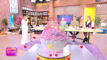 Οι συνεργάτες της στην εκπομπή, με αφορμή το ευχάριστο γεγονός της ετοίμασαν μια γλυκιά έκπληξη. Συγκεκριμένα, της πήγαν στο πλατό μια ροζ τούρτα με ένα κεράκι.