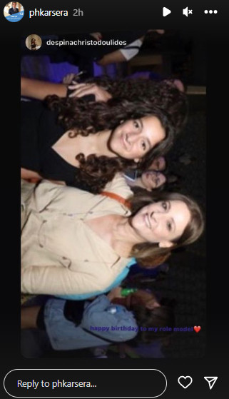 Δύο από τις κόρες της θέλησαν να της ευχηθούν και μέσω Instagram και δημοσίευσαν φωτογραφίες τους με την πολυαγαπημένη τους μητέρα. Συγκεκριμένα, η Δέσποινα Χριστοδουλίδη ευχήθηκε στη Φιλίππα Καρσερά με μια φωτογραφία τους και έγραψε «Χρόνια πολλά στο πρότυπό μου» ενώ η Ιωάννα Χριστοδουλίδη με μια κοινή τους φωτογραφία, με το τραγούδι «Μάνα μου» από Χατζηφραγκέτα.