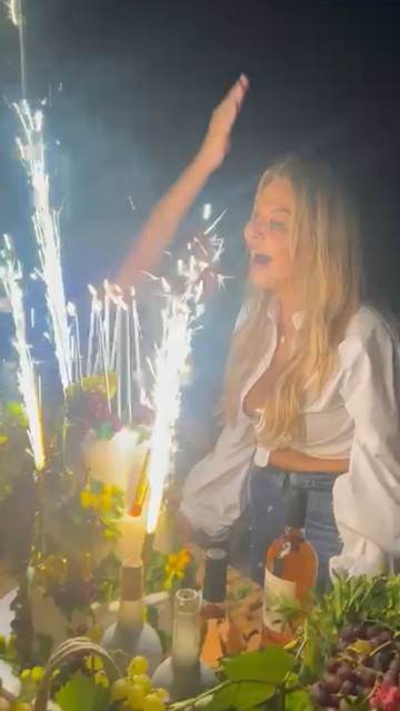 Η εντυπωσιακή τούρτα, διακοσμημένη με φρέσκα σταφύλια, ξεχώρισε ανάμεσα στις στιγμές που απαθανατίστηκαν και μοιράστηκαν στα social media, με την Κάτια να σβήνει τα κεράκια περιστοιχισμένη από οικογένεια και φίλους.