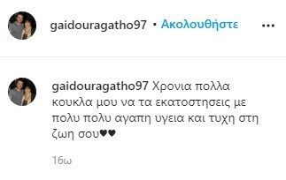 “Χρονιά πολλά κούκλα μου. Να τα εκατοστήσεις με πολλή πολλή αγάπη, υγειά και τύχη στη ζωή σου”.