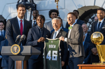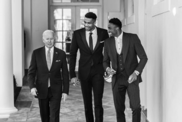 «Είναι τιμή να φιλοξενούμε τους Πρωταθλητές Bucks. Συγχαρητήρια σε όλους για την κατάκτηση του τίτλου, τους παίκτες, το επιτελείο, τους φιλάθλους. Στους Τελικούς ήσασταν πίσω με 0-2, αλλά δεν σταματήσατε να πιστεύετε και να παλεύετε», τόνισε στις δηλώσεις του ο πρόεδρος των ΗΠΑ. Γιάννη, έβαλες 50 πόντους στο Game 6. Πενήντα. Το χειρότερο είναι πως θυμάμαι και τα δύο πρωταθλήματα των Bucks. Αυτό που το κάνει ακόμη πιο ιδιαίτερο είναι ότι βρίσκεσαι εδώ με τον αδελφό σου. Είναι παιδιά μιας οικογένειας μεταναστών από τη Νιγηρία, που πήγαν στην Ελλάδα. Αυτό είναι σπουδαίο. Ξέρω πως η μητέρα σου είναι τόσο περήφανη που σε κοιτάζει, όπως κι ο πατέρας σου από εκεί ψηλά. Είστε μια τρομερή οικογένεια. Νομίζω πως κερδίσατε σε διαγωνισμό γονιδίων», ανέφερε ο 78χρονος Μπάιντεν.