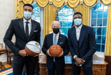 Mάλιστα τόσο ο Τζο Μπάιντεν όσο και ο Γιάννης Αντετοκούνμπο μοιράστηκαν φωτογραφίες από την ημέρα αυτή, ενώ και ο Θανάσης Αντετοκούνμπο, ο οποίος ήταν εκεί, έδειχνε χαρούμενος και συγκινημένος.