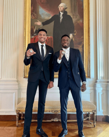 Ο Γιάννης Αντετοκούνμπο δήλωσε: «Είναι κάτι υπέροχο. Σας ευχαριστώ κύριε Πρόεδρε. Εκ μέρους των παικτών, του επιτελείου και του οργανισμού, είμαστε ευγνώμονες γι’ αυτή την ευκαιρία. Ένα παιδί από τα Σεπόλια, την Αθήνα, που μεγάλωσε από Νιγηριανούς γονείς, που πάλευαν για να μας δώσουν τα πάντα. Η οικογένεια μου έκανε πολλές θυσίες για να είμαι εδώ, τους ευχαριστώ. Είναι μεγάλη χαρά και τιμή που είμαστε στον Λευκό Οίκο, να γνωρίσουμε τον Πρόεδρο των ΗΠΑ» και σε άλλο σημείο συμπλήρωσε: «Για όλους εκεί έξω, αυτό είναι ένα τέλειο παράδειγμα πως με σκληρή δουλειά, θυσίες και αφοσίωση, χωρίς να τα παρατάς, με το να παλεύεις να είσαι καλός και να έχεις όνειρα, μπορείς να πετύχεις σπουδαία πράγματα στη ζωή σου. Αυτά έκανα όλη μου τη ζωή και τώρα είμαι στον Λευκό Οίκο. Χωρίς την σκληρή δουλειά τίποτα από αυτά δεν θα ήταν δυνατό».