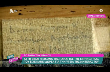 Ο Γιώργος Αγγελόπουλος είχε πολύ μεγάλη αδυναμία στην μητέρα του και το 2020 είχε κάνει ένα τάμα προκειμένου να γίνει καλά. Όπως αποκάλυψε η εκπομπή «Super Κατερίνα» είχε κάνει δωρεά μία πολύ ακριβή εικόνα στην Ιερά Μονή της Ευαγγελιστρίας. Πίσω από την εικόνα, μάλιστα, είναι γραμμένο το όνομά του.