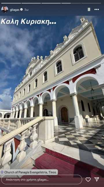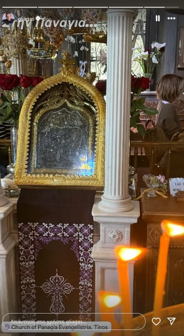 Από την άλλη, ο Γιώργος Λιάγκας μοιράστηκε στον προσωπικό του λογαριασμό στο Instagram Stories δύο στιγμιότυπα από την επίσκεψη. Στο πρώτο φαίνεται ο εξωτερικός χώρος του ναού, ενώ στο δεύτερο η εικόνα της Παναγίας, με τον παρουσιαστή να γράφει «Καλή Κυριακή» πάνω από τη φωτογραφία. Παρά την ευχάριστη αυτή απόδραση, το ζευγάρι επέλεξε να μην ανεβάσει κοινή φωτογραφία, κρατώντας τη στιγμή για τον εαυτό του.