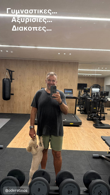 Έτσι, ξεκίνησε γυμναστική και μάλιστα, μοιράστηκε με τους διαδικτυακούς του φίλους μια φωτογραφία από το γυμναστήριο, έχοντας στο πλευρό του την αγαπημένη του σκυλίτσα, τη Φούσκα.