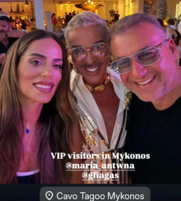 Το βράδυ του Σαββάτου, 30 Αυγούστου, το ζευγάρι απαθανατίστηκε μαζί με τον Λάκη Γαβαλά, ο οποίος μοιράστηκε τη συντροφιά τους, ενώ η Μαρία Αντωνά δε δίστασε να αναδημοσιεύσει το στιγμιότυπο στο Instagram.