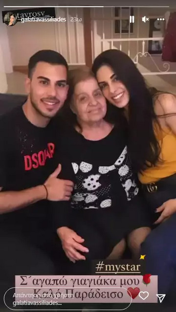 Την είδηση γνωστοποίησε η ίδια μέσα από τον δικό της προσωπικό λογαριασμό στο Instagram, κοινοποιώντας μια φωτογραφία με την γιαγιά της και τον αδελφό της. Συνόδευσε την φωτογραφία με τα εξής λόγια: “Σ’ αγαπώ γιαγιάκα μου. Καλό Παράδεισο” και την χαρακτήρισε αστέρι.
