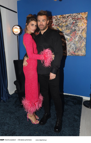 Το ζευγάρι πόζαρε αγκαλιασμένο και χαρούμενο στον φωτογραφικό φακό, με την Ιωάννα να φορά ένα μακρύ φούξια φόρεμα με ανοιχτή πλάτη, παγιέτες και πούπουλα στα τελειώματα. Το εντυπωσιακό φόρεμα ήταν άρτια συνδυασμένο με τα ροζ πέδιλα που επέλεξε.