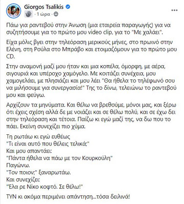 Η ανάρτηση του Γιώργου Τσαλίκη στο “Thank you, Next”