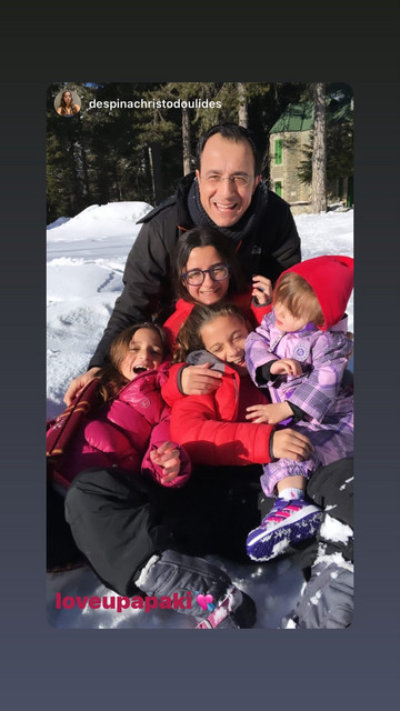 Η Δέσποινα Χριστοδουλίδη θέλησε να ευχηθεί στον πατέρα της και διαδικτυακά, δημοσιεύοντας μία φωτογραφία τους και τις αδελφές της από εξόρμησή τους στα χιόνια. Στην ανάρτησή της, έγραψε χαϊδευτικά ”Σ’ αγαπώ παπάκη”.