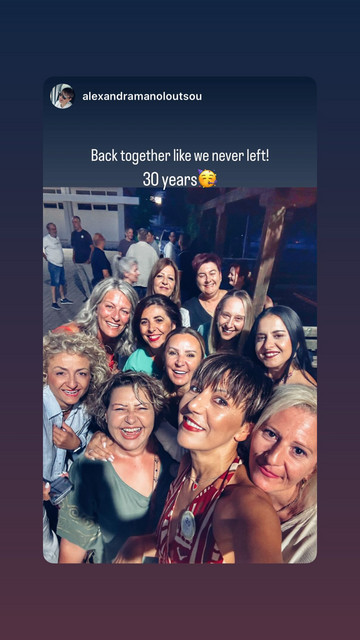 Η παρουσιάστρια και ραδιοφωνική παραγωγός ταξίδεψε στον Πολύγυρο Χαλκιδικής, όπου είχε την ευκαιρία να συναντήσει παλιούς της συμμαθητές από το λύκειο, με τους οποίους διατηρεί στενές σχέσεις μέχρι και σήμερα.