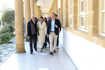 Από το πλευρό του δεν έλειπε, φυσικά και η γυναίκα του, Γιώτα Παπαδοπούλου η οποία έκλεψε τις εντυπώσεις για άλλη μια φορά με το στυλ της. Η σύζυγος του Νικόλα Παπαδόπουλου επέλεξε ένα κομψό άσπρο παλτό που δένει στην μέση, γαλάζιο πουκάμισο με άσπρη παντελόνα και γαλάζιες γόβες. Την εμφάνιση ολοκλήρωσε με Chanel bag ενώ επέλεξε να μαζέψει τα μαλλιά της σε μια κοτσίδα.