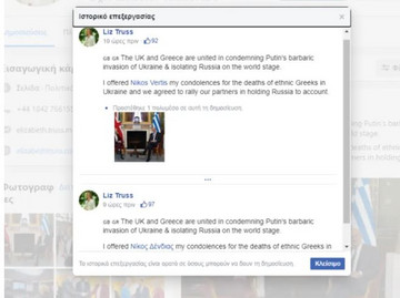 Μετά το πέρας της συνάντησής τους, η Λιζ Τρας έκανε μια σχετική ανάρτηση στο Facebook, με κοινή τους φωτογραφία, όμως έκανε ένα λάθος…