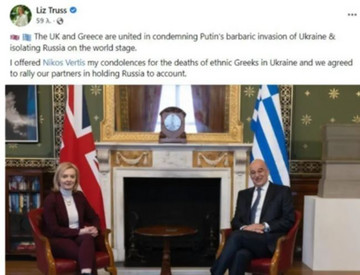 Με την Βρετανίδα υπουργό Εξωτερικών Λιζ Τρας, συναντήθηκε χθες Δευτέρα στο Λονδίνο ο Έλληνας υπουργός Εξωτερικών, Νίκος Δένδιας.