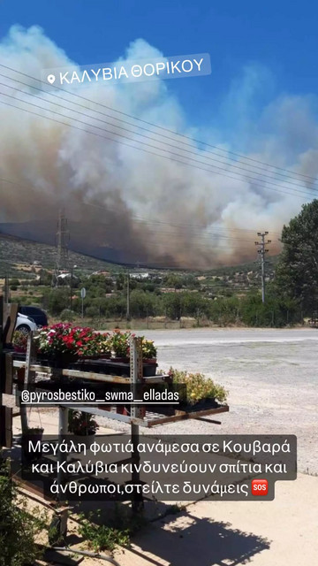 «Μεγάλη φωτιά ανάμεσα σε Κουβαρά και Καλύβια, κινδυνεύουν σπίτια και άνθρωποι, στείλτε δυνάμεις» έγραψε αρχικά ο Γρηγόρης Γκουντάρας, ενώ στη δεύτερη έκανε έκκληση να σταλεί βοήθεια από αέρος. «Στείλτε βοήθεια από αέρος θα καούμε».