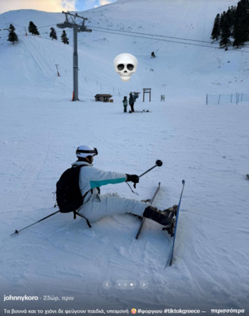 Ο χρήστης του δημοφιλούς μέσου ανέβασε συνολικά τρεις φωτογραφίες. Η πρώτη τον δείχνει να στέκεται στα πέδιλά του, η δεύτερη δείχνει ένα sms που φέρεται να του έστειλε ο πατέρας του που τον καλεί να προσέχει, επειδή στο χιονοδρομικό κέντρο βρισκόταν ο πρωθυπουργός και η τρίτη φωτογραφία δείχνει τον σκιέρ να έχει πέσει στο χιόνι.