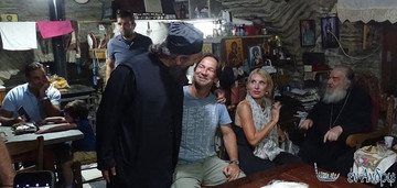 Η Ελένη Μενεγάκη μίλησε για αρκετή ώρα με τον ηγούμενο Ευδόκιμο, φωτογραφήθηκε με τον πατέρα Αέτιο, ενώ δεν δίστασε να ποζάρει και με κατοίκους του νησιού που την περίμεναν έξω από το μοναστήρι.