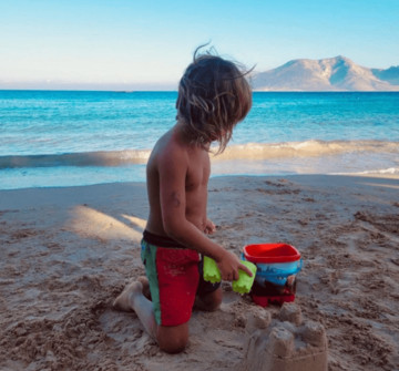Η παρουσιάστρια, δημοσίευσε μερικές φωτογραφίες του γιου της, Αρίωνα να παίζει στη θάλασσα, θέλοντας να ευχηθεί στους φίλους της, καλό μήνα.