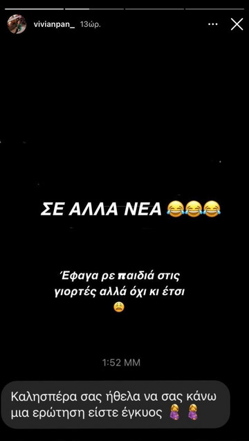 Έτσι, ανάρτησε ένα story, στο οποίο διέψευσε την φημολογούμενη εγκυμοσύνη της, ενώ επέριψε το γεγονός της πιο φουσκωμένης κοιλίτσας, στα φαγητά των Χριστουγέννων.