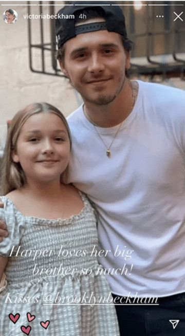 Το απόγευμα της Δευτέρας, η περήφανη μαμά, δημοσίευσε στον προσωπικό της λογαριασμό στο Instagram, ένα στιγμιότυπο της Harper Beckham και του μεγαλύτερου γιου της, Brooklyn, στο οποίο η μικρούλα, φοράει ένα τέλειο, καρό φόρεμα στο χρώμα της μέντας.