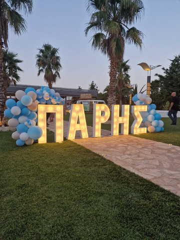 Το HELLO! Cyprus εξασφάλισε τις πρώτες φωτογραφίες από τον χώρο που πραγματοποιείται το πάρτι της βάπτισης του μικρού Πάρη, με τη διακόσμηση να είναι άκρως εντυπωσιακή. LED με το όνομα του νεοφώτιστου υπάρχει στην είσοδο του χώρου ενώ δεξιά και αριστερά υπάρχουν μπαλόνια σε μπλε αποχρώσεις.