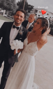 Ο Hovig σε ένα total suit με παπιγιόν που του ταίριαζε άψογα και η Αρετή, σε ένα εντυπωσιακό νυφικό που κολάκευε τη λεπτή σιλουέτα της.