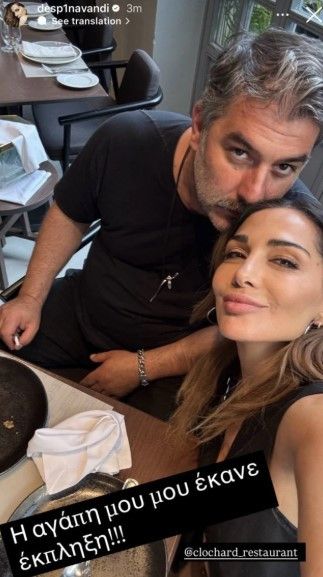 Την αποκάλυψη έκανε η ίδια η Δέσποινα Βανδή, μέσα από ένα Instagram story που κοινοποίησε, στο οποίο έχει γείρει χαμογελαστή προς τον ηθοποιό, σημειώνοντας: “Η αγάπη μου, μου έκανε έκπληξη”.