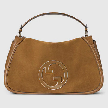 Κατασκευασμένη από καφέ σουέτ, η μεγάλη αυτή τσάντα διαθέτει στρογγυλό σύμβολο του Οίκου σε σμάλτο, προσφέροντας μια διαχρονική γοητεία. Το στυλ ολοκληρώνεται με μια δερμάτινη επάνω λαβή και ρυθμιζόμενο λουρί ώμου, εξασφαλίζοντας ταυτόχρονα άνεση και κομψότητα. Με την Gucci Blondie, κάθε εμφάνιση αποκτά μια αίσθηση πολυτέλειας και στυλ που παραμένει πάντα επίκαιρη.