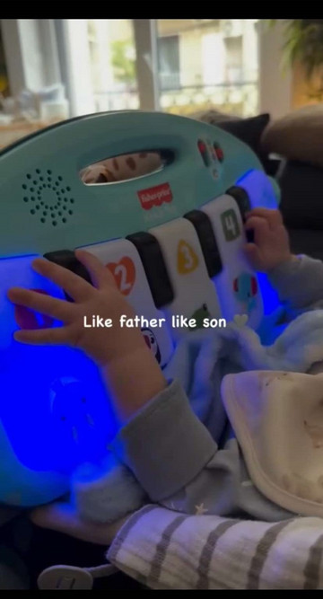 Στο instastory φαίνεται ο μικρός, ο οποίος θα πάρει το όνομα Βασίλης, να παίζει με ένα μουσικό παιχνίδι.