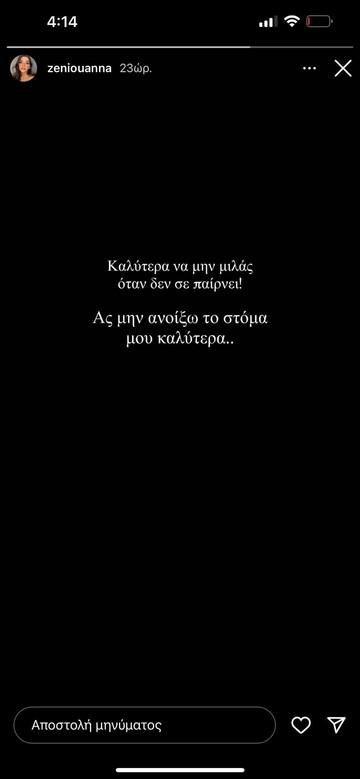 Η Άννα Ζένιου την ίδια ώρα αντέδρασε με το εξής post