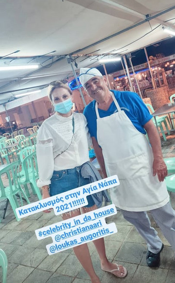 Η ίδια επισκέφθηκε την Αγία Νάπα μαζί με τον αδερφό της και παραγωγό, Ανδρέα Αριστοτέλους ενώ απόλαυσαν λουκουμάδες στον περίπατό τους, τηρώντας έτσι το έθιμο του Κατακλυσμού.