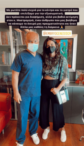Η δημοφιλής content creator, λοιπόν, αποφάσισε να κοινοποιήσει μια φωτογραφία με τον γιατρό της, κύριο Μαστρομηνά, ευχαριστώντας τον δημόσια και τιμώντας τον για την βοήθειά του στο να γίνει μητέρα!