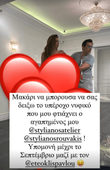 Η ίδια επισκέφθηκε το ατελιέ του σχεδιαστή μόδας που πρόκειται να σχεδιάσει το νυφικό των ονείρων της και θέλησε να μοιραστεί μια φωτογραφία κατά την διάρκεια που το δοκιμάζουν και κανονίζουν τις τελευταίες λεπτομέρειες.