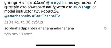 “Χαχαχαχ καλό” έγραψε σε ένα από τα instastories της. Παρόμοιο σχόλιο άφησε και στον επίσημο λογαριασμό του “GNTM”.