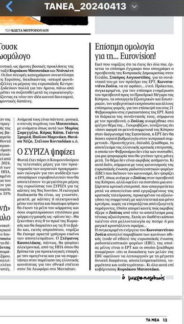 «Να σας θυμίσω ότι τον Αύγουστο το ΡΙΚ αποφάσισε ότι την Κύπρο θα εκπροσωπήσει ο νικητής του Fame Story από το Star αλλά τότε με καταγγελία της ΕΡΤ ζήτησε και αποκλείστηκε αυτή η συνεργασία. Βλέπουμε λοιπόν ότι υπάρχει μία κόντρα στη Eurovision διότι είναι κερδοφόρα. Την έχουν ζητήσει ιδιωτικά κανάλια και δεν τη δίνει. Δεν ξέρω πια αν θα ξαναψηφίσω».