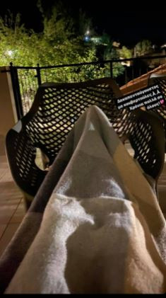 Με μια κουβέρτα λόγω καιρού, μας δείχνει τη θέα που απολαμβάνει και τις ξέγνοιαστες στιγμές πριν επιστρέψει στην εκπομπή της.