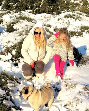 Μαμά και κόρη, παρέα με τον σκύλο τους παίζουν στα χιόνια και ποζάρουν στο φακό, δίνοντας μας μια υπέροχη φωτογραφία.