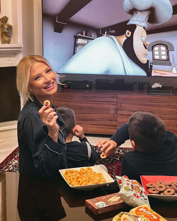 Η παρουσιάστρια ανάρτησε μέσω του προσωπικού της λογαριασμού στο Instagram, ένα στιγμιότυπο από το βράδυ Κυριακής. Η ίδια μαζί με τους δυο γιους της, κάθισαν στο σαλόνι με σνακς και παρακολουθούν κινούμενα σχέδια.