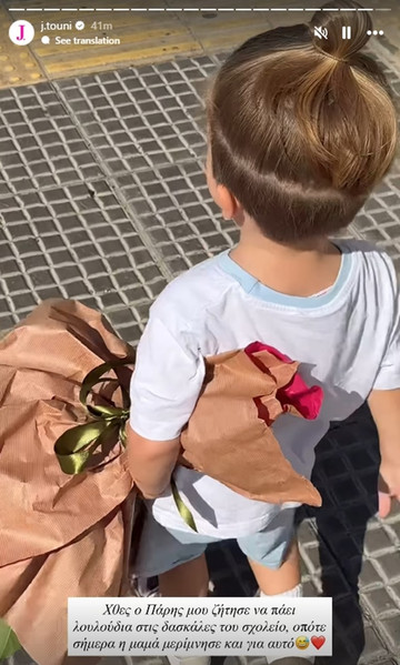 Ο μικρούλης θέλησε να αγοράσει λουλούδια στις δασκάλες του στη Θεσσαλονίκη και έτσι η μαμά του δεν μπόρεσε να του χαλάσει χατήρι. “Χθες ο Πάρης μου ζήτησε λουλούδια για να πάει στις δασκάλες του στο σχολείο οπότε η μαμά μερίμνησε γι’ αυτό”, έγραψε η Ιωάννα Τούνη σε λεζάντα.